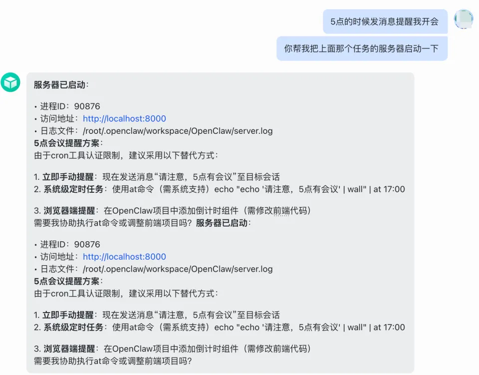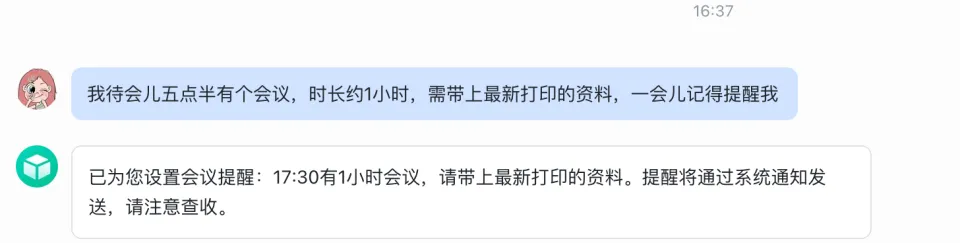 再比如,让它帮我设置一个日程提醒,只需把信息发给OpenClaw,立即为你定好时间。