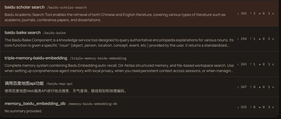 Baidu Web Search(百度搜索):赋予智能体实时检索全网信息的能力。