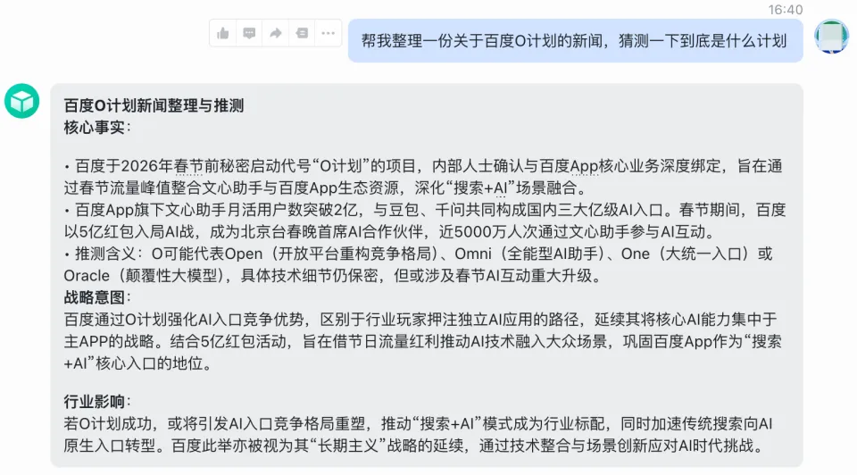 我们让OpenClaw去整理一些「百度O计划」的推测。
