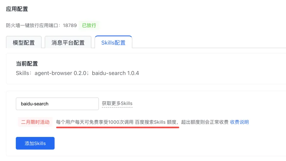 原本的消息平台配置,如接入飞书、钉钉,Skills加载等环节都是互相独立的。