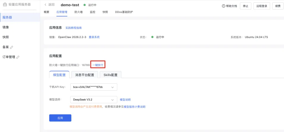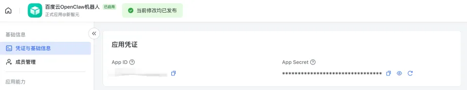 将飞书对应的App ID和App Secret配置到百度智能云轻量服务器即可。