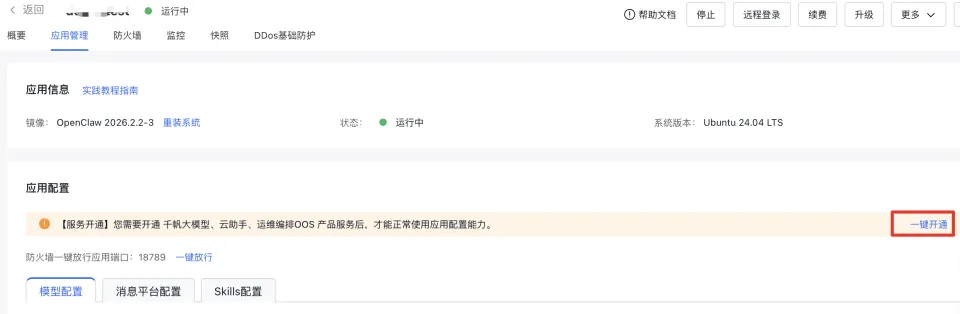 第二步,无需脱离服务器后台页面,百度已经做好了「一键开通」和「一键放行」功能。