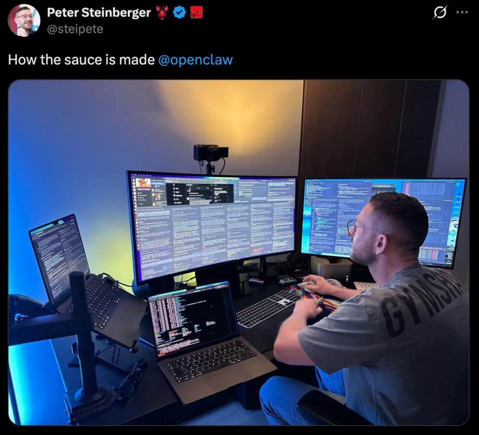 不仅如此,OpenClaw之父Peter Steinberger最近还晒出了个人日常——