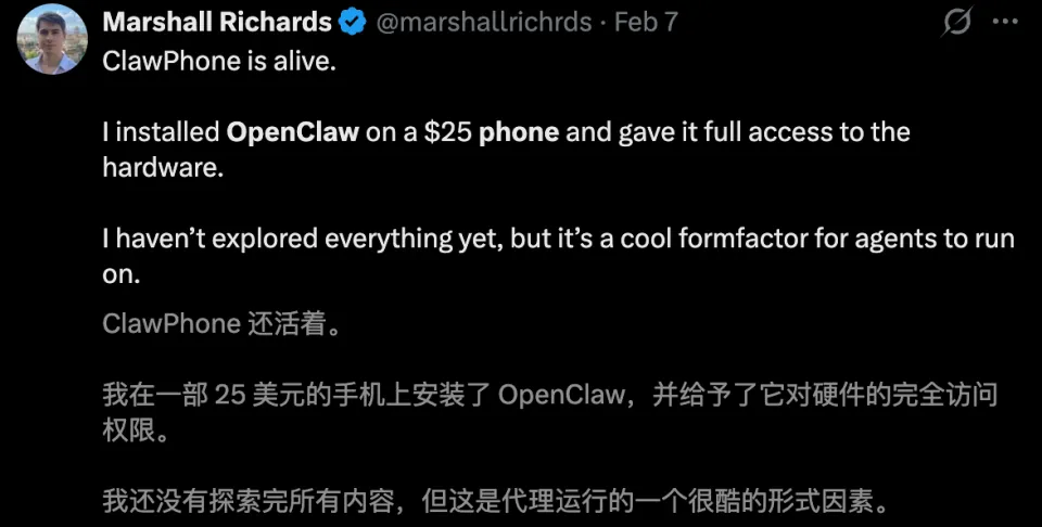 这不,一位小哥将OpenClaw装在了安卓手机,并向AI开放了所有的访问权限。