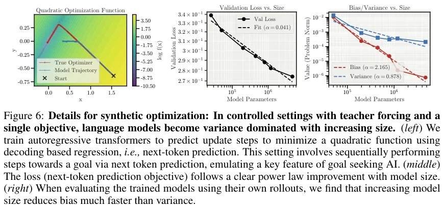 研究人员训练Transformer模型去模仿某种数学优化路径。模型规模越大,它们学习目标函数的速度就越快。它们维持长期连贯行动序列的能力增长却相对迟缓。
