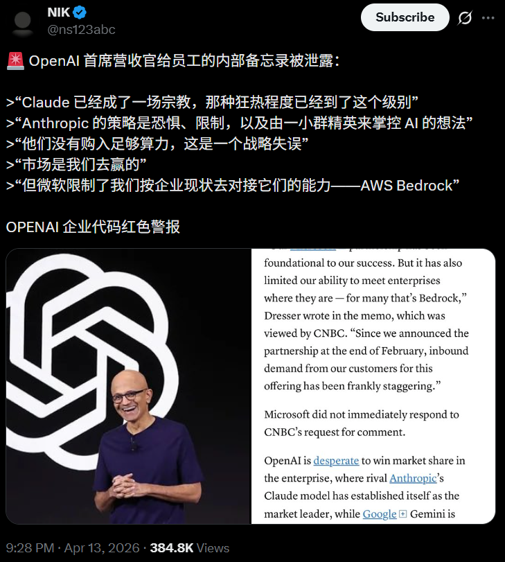 一份最新流出的OpenAI四页内部备忘录,信息量太大了!