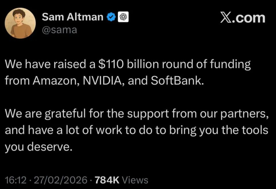 今年2月底,亚马逊宣布投OpenAI 500亿美金。