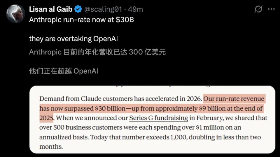 就在上周,Anthropic官宣年化收入飙破300亿美元,被外界称为首度超越OpenAI。