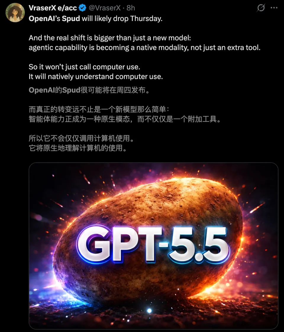 这次用「土豆」,多少有点老干部气质。爆料称,Spud可能在周四推出。