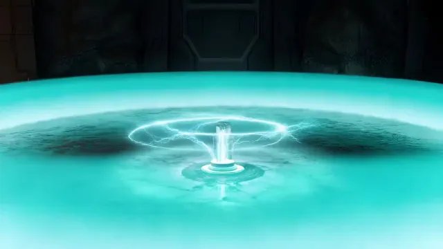 现在我们给Vidu Q3另一组提示词,来测试其特效能力:“基座上的外星神器释放出一个环状能量波。波环迅速扩大,半透明青色,内部有电弧,在地板和墙壁上产生强烈辉光。冲击波涟漪效果,高对比度泛光。”