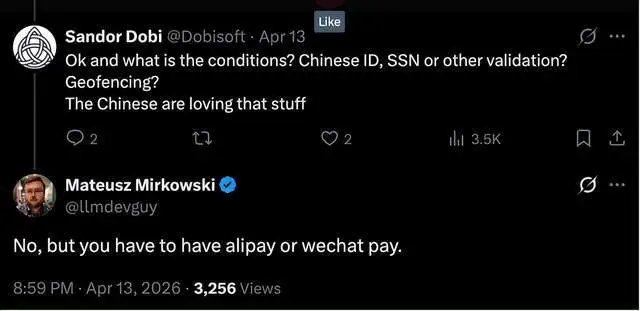 最近几天,X上的一些AI博主,突然开始提及一个与AI不相关的问题:怎么注册支付宝/微信支付等中国支付工具。